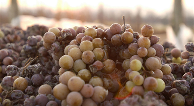 并不是每个年份都能生产冰酒,它精致的香味来自于风味高度浓缩的葡萄果实。当温度低于零度,葡萄颗粒中的水会自然结冰,而在低温的压榨过程中冰不会融化,留在压榨机内,这使得压榨所得的葡萄果汁的含水量低、含糖量高,因此会像蜂蜜一样浓郁甜美。由于酵母在高糖环境下的工作效率低,果汁中的糖分无法完全发酵成为酒精,因此冰酒的酒精度较低。